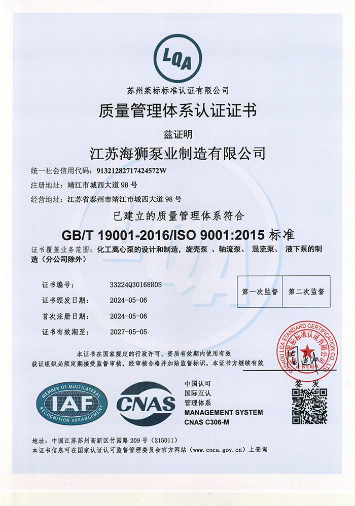 江苏海狮泵业制造有限公司成立于1977年,由上海水泵厂石油化工泵分厂、江苏新亚化工机械总厂联合组建而来,是从事立、卧式、单、双吸离心泵、BB系列及各种结构型式的多级泵等石油化工泵、核级泵专业制造的中型企业,是中石化物资资源市场成员厂、中国石油天然气集团公司炼化备品配件一级网络成员单位,ISO9001质量体系认证企业,民用核安全设备设计和制造许可企业。公司集机械制造、冷热加工、熔模铸造、科研生产于一体。荣获“江苏省明星企业”、“部级先进企业”、“江苏省星火技术密集区重点企业”、“江苏省特级AAA(资信等级)”、“泰州市重合同、守信用企业”、“江苏省著名商标”等荣誉称号。